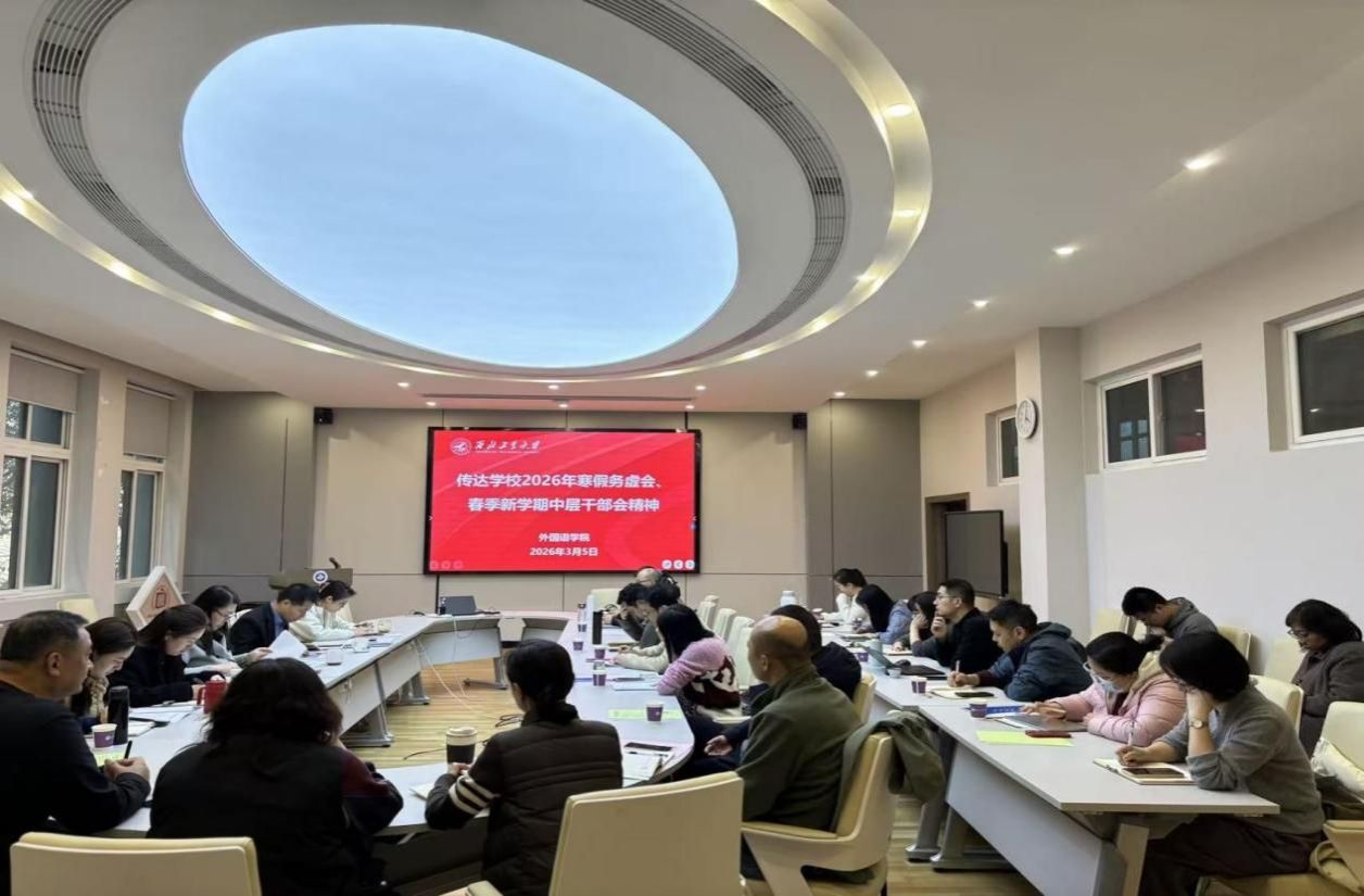 院长孙瑜传达学习了学校新学期中层干部会李言荣书记、宋保维校长的重要讲话精神,重点解读了学校2026年工作要点。同时,她安排部署了学院2026年重点工作,提出五个方面工作要求:一是建强队伍抓科研,创新人才引进机制,完善人才培育体系,扩大学术影响力,布局前沿交叉领域;二是守正创新促教学,按照“四位一体”大学外语人才培养模式提升学生全球胜任力,着力打造“新工科”系列英语课程与教材,深入推进“三进”工作;三是提质拓面扩开放,深入参与全球合作,服务国家发展战略;四是特色发展优育人,把学科、专业建在产业链上,高质量完成招生工作;五是党建引领强基层,进一步强化推动学院转型发展的理念和行动。